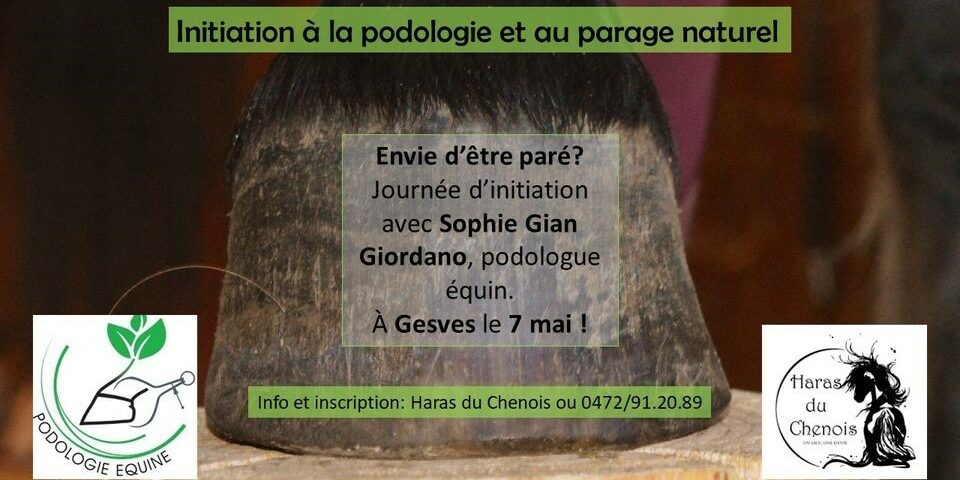 07/05/23 Initiation à la Podologie et au parage naturel : Sophie Giangiordano – Podologue Équin. Info et inscription : Haras du Chenois : 0472/91.20.89