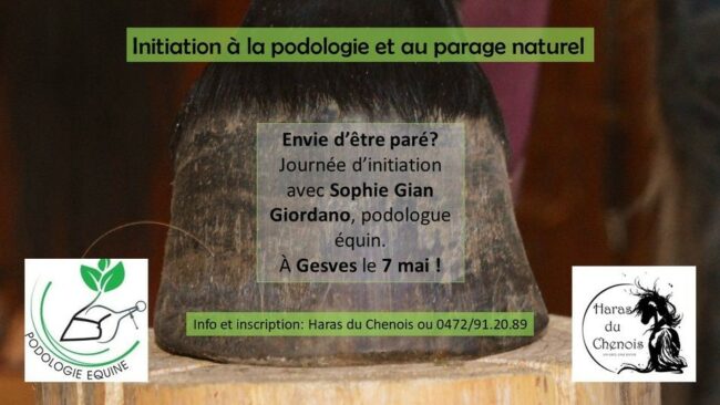 07/05/23 Initiation à la Podologie et au parage naturel : Sophie Giangiordano – Podologue Équin. Info et inscription : Haras du Chenois : 0472/91.20.89